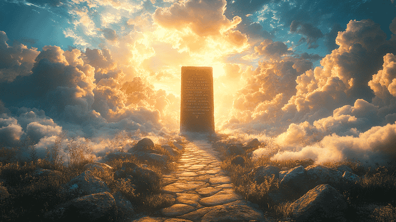 Artistic representation of the 10 Commandments on a stone tablet in divine light (image generated with Midjourney)