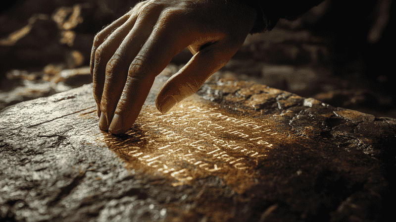 Representation of a Commandment engraved on an ancient stone tablet (image generated with Midjourney)